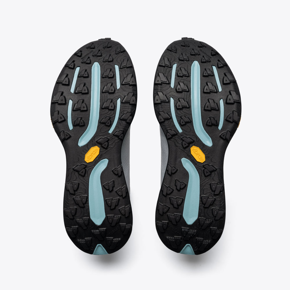 The Vibram Megagrip outsole with 4 mm lugs grips confidently across wet, dry, and unpredictable surfaces, so you can stay focused on your run, not your footing.